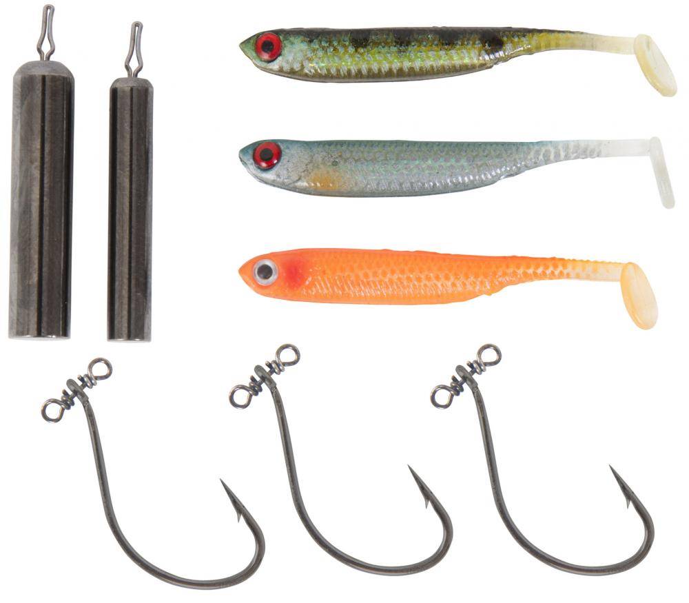 - Подходит для всех видов силиконовых приманок, но наиболее эффективен с пассивными слагами и некрупными червями.