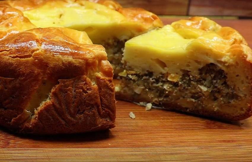 - Убираем все в холодильник, прикрыв сверху пищевой пленкой. Пирог можно сделать дома, чтобы подать к столу в качестве закуски. Но для него потребуется некоторое время, поэтому следует правильно рассчитать время на его приготовление.