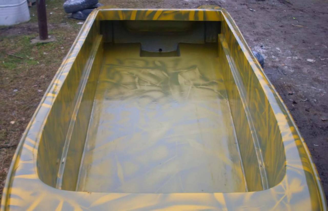 На такой лодке очень удобно рыбачить на участках водоемов, поросших камышами, а также на мелководье. Лодка очень устойчивая. На плавсредство можно установить мотор мощностью в три лошадиных силы.