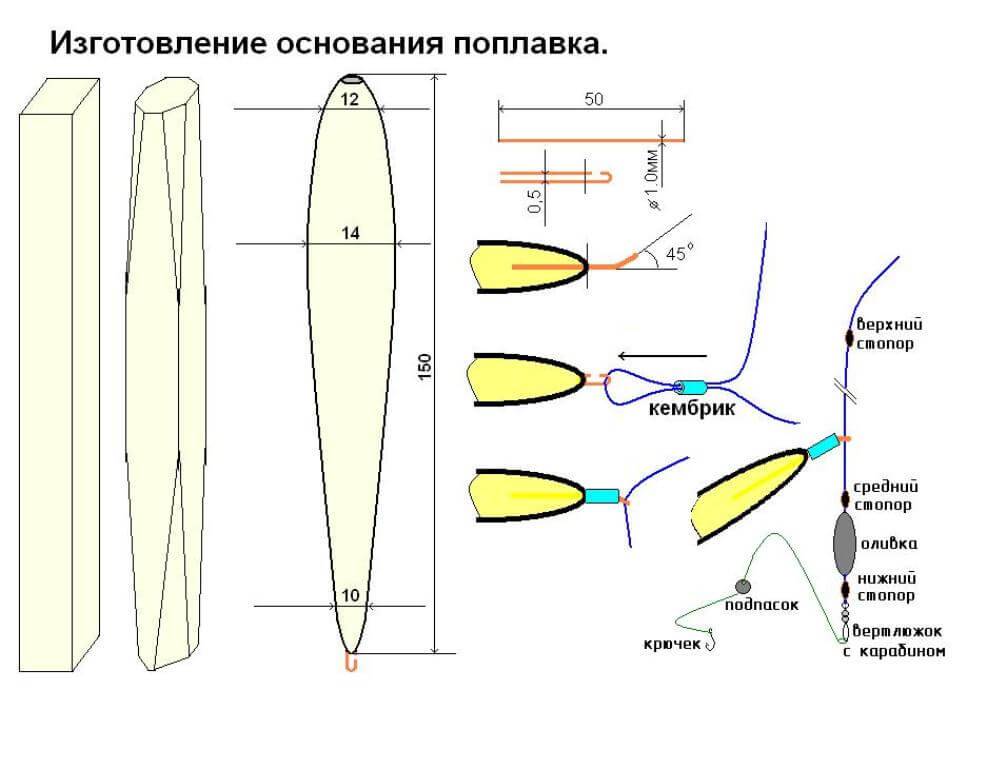 Лучше всего будет сделать корпус из бальзы или схожего по характеристикам материала с плотностью меньшей, чем у воды. А дабы он не просто плавал на поверхности, а держался, показывая вам клёв и любые колебания наживки, необходим уже киль. Для антенны уже не существует материалов, из которых еёлучше сделать, главное, чтобы она не была тяжелее основной конструкции, а всё остальное производитель может решать для себя. Но для ловли всегда необходима одна её характеристика – заметность