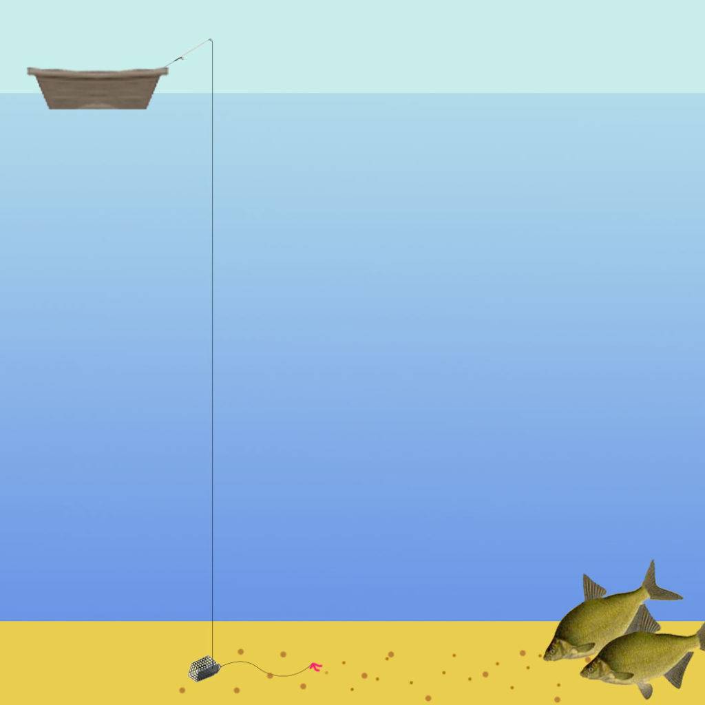 - прикормка для приманивания может находиться в непосредственной близости от крючков — в кормушке на самой леске;