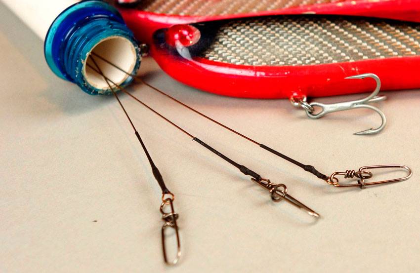 Поводок из стали (сталька) считается самым надежным среди существующих сегодня. Спиннинг с такой оснасткой может выдержать значительную нагрузку, а перекусить ее не под силу даже щуке. Бывалые рыбаки по сей день пользуются гитарными струнами для изготовления сталек, однако и в рыболовных магазинах выбор таких изделий и необходимых для вязки материалов достаточно велик.