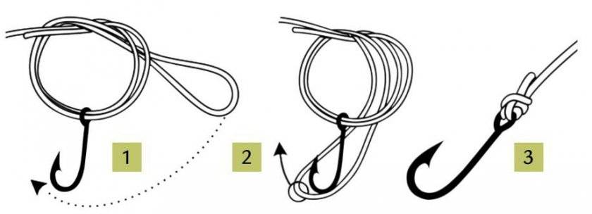 - Затем остается лишь протянуть рабочий конец через петельку и затянуть узел.
