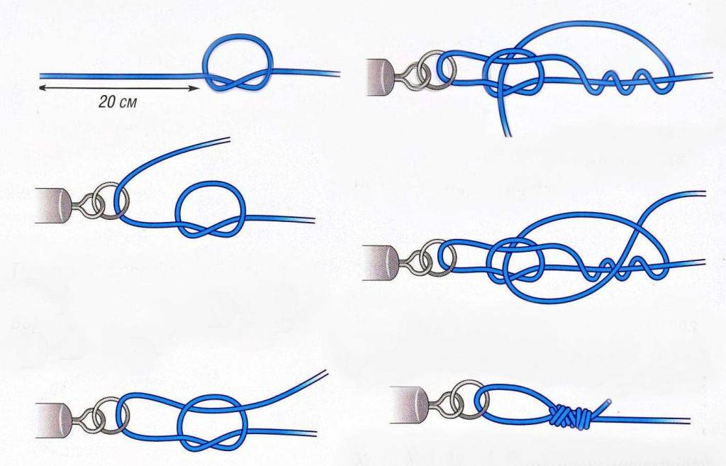 - Узел должен быть смочен и затянут плотно, а лишние части лески обрезаются, оставив отрезок не менее 3 мм.