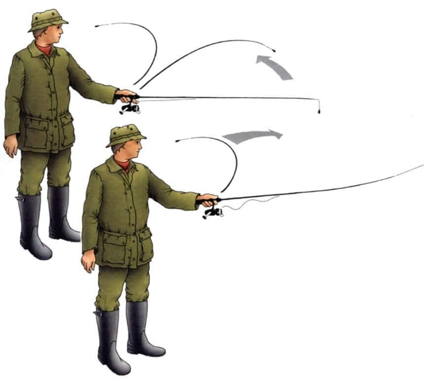 Замах не должен останавливаться в задней точке. Всё должно происходить без остановок — отводите удилище за спину и тут же посылаете приманку вперёд, словно маятником. Используйте гибкость удилища, чтобы послать приманку дальше.