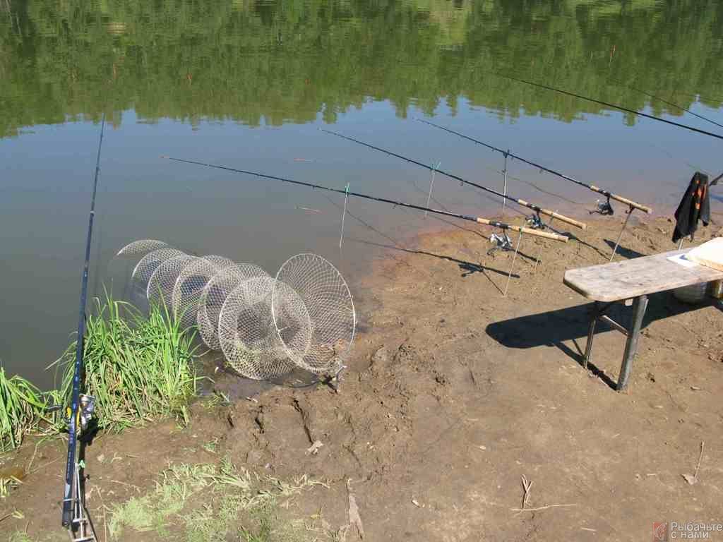 Хороший клев идет, когда запуск осетра был накануне рыбалки. Завсегдатаи пруда знают это время и стремятся вовремя попасть на массовый ход рыбы. Недавно выпущенный в пруд и успевший адаптироваться осетр (для этого ему нужно немного времени) пока еще голоден, он клюет жадно. В период активности рыба ходит по периметру водоема (обычно по часовой стрелке). Обнаружив где-то корм, она тормозит. Чаще это случается в углах водоема. В сентябре, а иногда и в октябре, когда стоят солнечные дни, хорошие места для ловли бывают на прибрежных бровках вблизи береговых отмелей и песчаных пляжей. Тогда осетра в основном прикармливают на первой бровке, где глубина может быть всего 80 см, а расстояние от берега 5–6 м. В теплую погоду стая выходит и на вторую бровку, где глубина 1–1,5 м. На дальнем забросе эта рыба попадается чаще в холодный период поздней осени. 6656 В поздний период осени хорошо также найти рядом с берегом небольшую яму. В ней может собраться стая. В период максимального охлаждения воды осетр днем и ночью любит подолгу стоять на отдаленных ямах, в зоне затопленного русла и лишь в короткие часы кормовой активности выходить на бровку или полив ближе к берегу. Очень часто осенью осетр держится в верхней части пруда, где освеженная кислородом вода втекает в него через трубу дамбы или иным образом. Здесь рыба также обычно держится на русле (как правило, в местах, где донный ил более всего размыт).