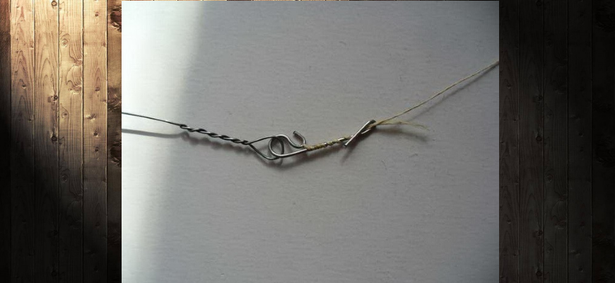 - На грузиле зафиксируйте жёсткую проволоку, соответствующую размеру будущего поводка.