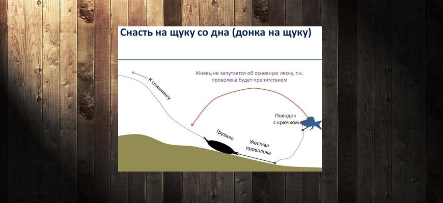 Для ловли щуки на донку спиннинговое удилище или пикер с кастингом до 40 г, оснащают безынерционной катушкой среднего размера с плетеной, либо монофильной леской, выдерживающей нагрузку 4-6 кг. Так как чувствительность снасти на дистанциях, обычных для такой реки, не критична, выбор лески зависит от предпочтений рыболова.