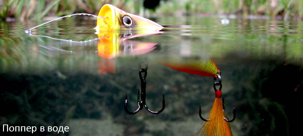 Разделение этих пластиковых рыбок на плавающие или тонущие попперы неправильное, так как эти безлопастные воблеры не погружаются глубже 10−15 см.
