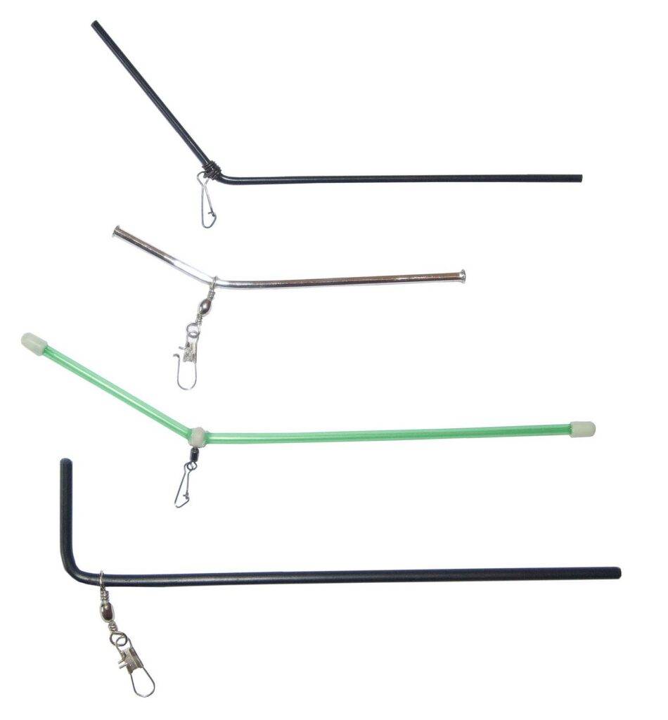 Отдельным примером в этом списке стоит антизакручиватель для фидерной лески с резиной-амортизатором. В классическом виде противозакручиватель — это изогнутая пластмассовая трубочка диаметром свыше 1 мм. Чаще всего именно такой типаж предлагается в рыболовных торговых сетях с отличием лишь в длине плеч своеобразного коромысла. Кроме трубочек существуют варианты Г-образных отводов, которые производят из сталистой упругой проволоки, на концах которых и в точке изгиба устраивают крепёжные петли, для соединения с составляющими остального оснащения.