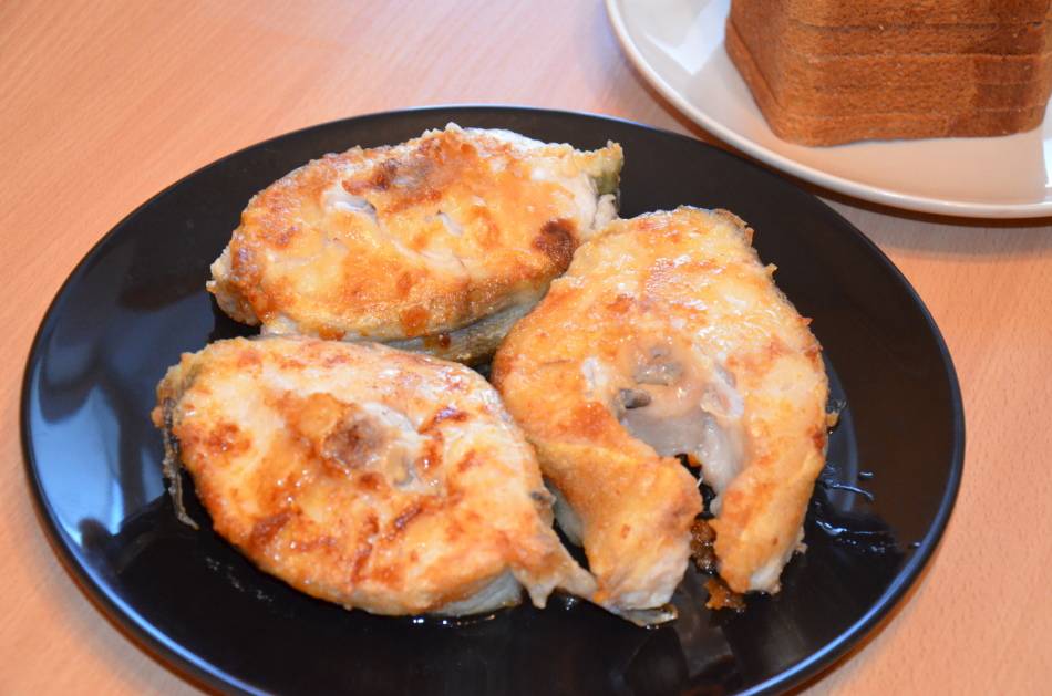 К рыбному блюду идеально подойдет соус на основе сметаны или томатов, также их можно кушать с горчицей. Гарниром может служить картофельное пюре, салат из свежих овощей или они же, но приготовленные на пару, особенно брокколи и морковка. Будьте красивыми и здоровыми!