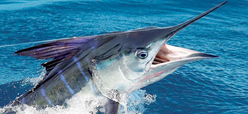 Голубой марлин – желанный рыбацкий трофей, впечатляющий своим красивым внешним видом и внушительными габаритами. Представители этого вида крупнейших костистых рыб вырастают до 5 метров в длину и набирают вес до тонны. Но обладателям такой массивной туши совершенно не свойственна неповоротливость. Голубые марлины способны развивать скорость перемещение до 120 км/ч.