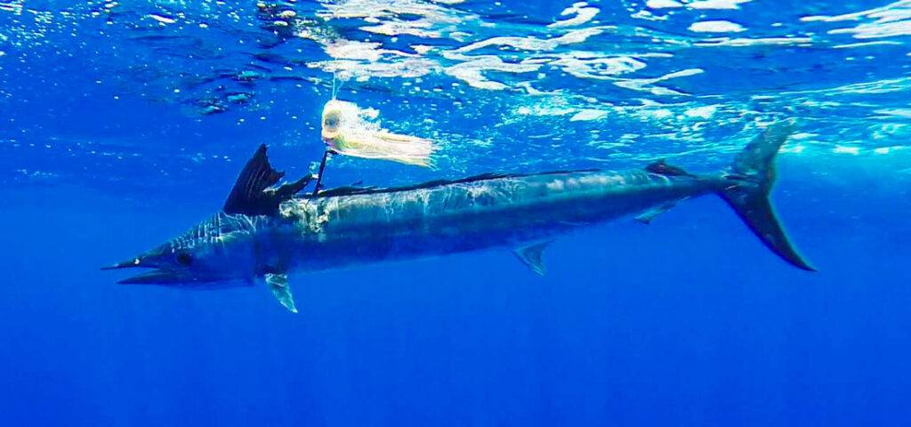 Рыбалка на голубого марлина невероятно азартна, ведь представители этих рыб активно сопротивляются стать трофеем, то уходя под воду на глубину до 200 м, то стремительно выпрыгивая вверх и осуществляя впечатляющие кульбиты в воздухе