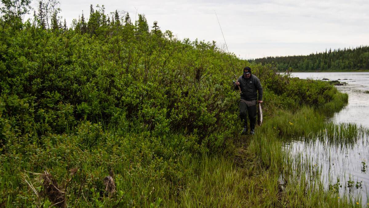 У нас были куплены лицензии обоих видов («поймал-изъял» и «поймал-отпустил»), на космические, даже по питерским меркам, деньги. По итогу, все лицензии «поймал-изъял» мы так и не смогли закрыть, а до «поймал-отпустил» даже не добрались. Легендарную рыбинспекцию с автоматчиками в этот раз мы так и не встретили, хотя наши попутчики уже не раз имели с ней дело на прошлых рыбалках. Встреча грозит жестким шмоном всего лагеря и лодок, проверкой лицензий, документов и снастей, профилактическими угрозами и разъяснительными беседами — и это если даже у вас все в порядке с лицензиями. Если же нет — то рыбинспекцию лучше не встречать. Места тут суровые.
