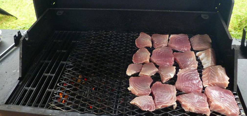 - Достать тунца, подсушить, поместить на решетку коптильной камеры. Коптить тунца в коптильне следует 5-6 часов при температурном режиме 25-30 градусов.