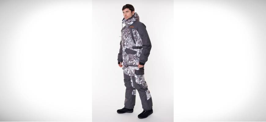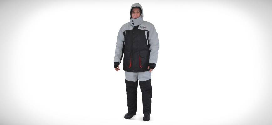 Мужской влагозащищённый костюм из куртки с полукомбинезоном предназначен для зимней рыбалки (активность — средняя). Основной материал — полиэстер, ткань — оксфорд. Застёгивается на молнии и кнопки. Выдерживает морозы до -25 °С.