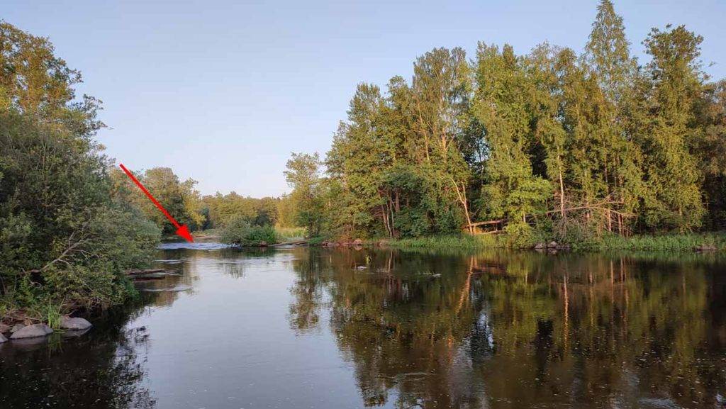 Сразу становится ясно, что это место для ловли на фидер почти непригодно — русло слишком близко к берегу: