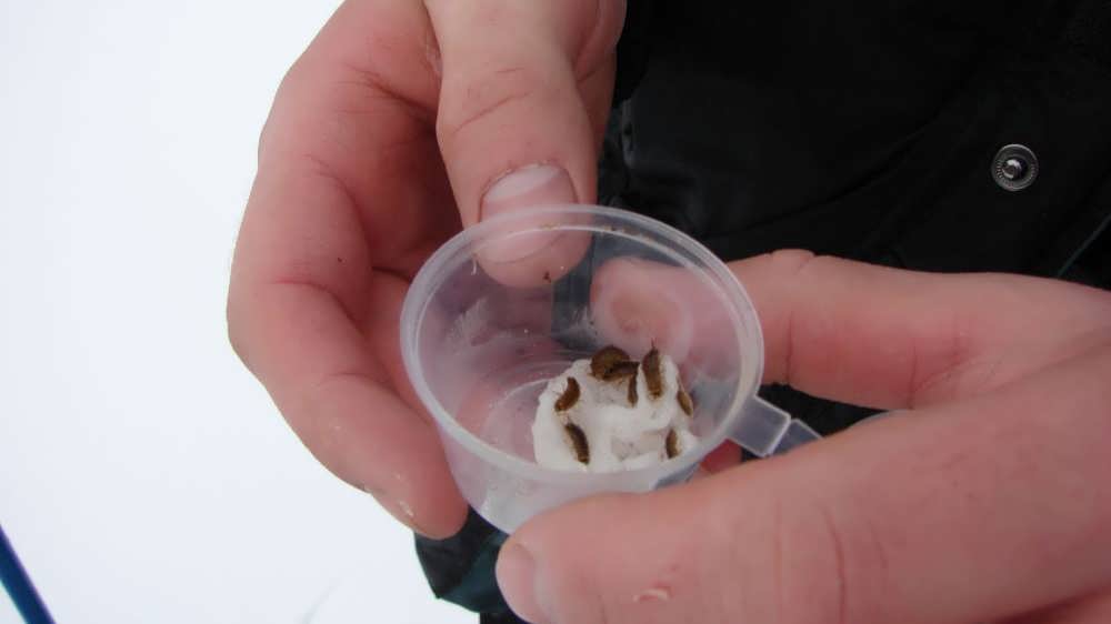 В принципе, казар можно вполне неплохо хранить, поместив их в емкость с водой. Но зимой мы в первую очередь нацелены на щуку, поэтому в емкости (ванне) храним живца, а казару добываем по факту на рыбалке – и тут же используем.