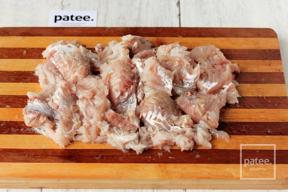 Отделяем филе минтая от костей, срезаем хвост и плавнички и тщательно промываем рыбку. Скелет с остатками мяса я не выкидываю, а кладу в морозилку — когда наберется много таких «отходов» от разных сортов рыбы, можно приготовить прекрасный крепкий и насыщенный рыбный бульон для приготовления совершенно чудесных блюд!