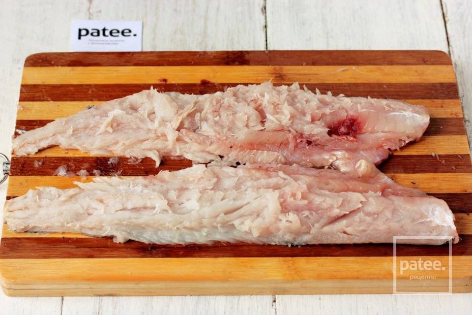 - Когда рыба разморозилась, тщательно очищаем ее от внутренностей и черной пленки. Отрезаем плавники. Снимаем кожу, для чего понадобится острый нож. Разделываем минтай на филе. Освобождаем от костей. Их в этом виде рыбы немного. Весь процесс разделывания займет не более 5-7 минут.