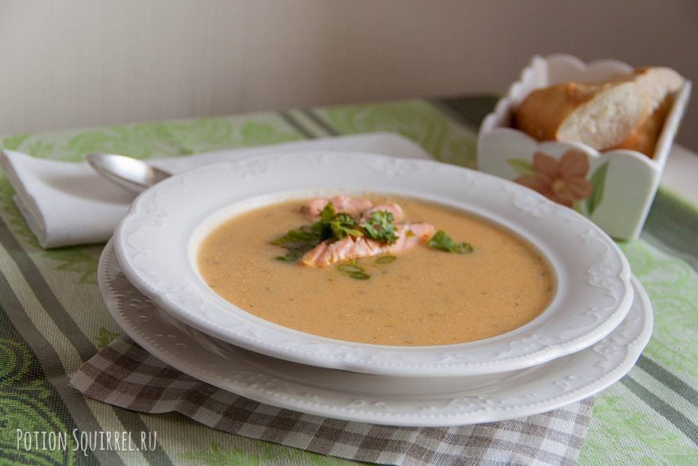 Сливочный суп с семгой не нуждается в дополнительной рекламе, ведь уже в самом разгаре готовки на кухню то и дело будут заглядывать любопытные носы и раз за разом интересоваться, а когда же будет готово. Поэтому вам достаточно будет начать разливать готовое варево по порционным тарелкам, и за стол тут же сбегутся все, звать никого не придется. Суп уйдет за милую душу и едва ли успеет остыть. Не забудьте подать к нему свежий хлеб, домашние чесночные булочки или ароматные гренки.Приятного аппетита!