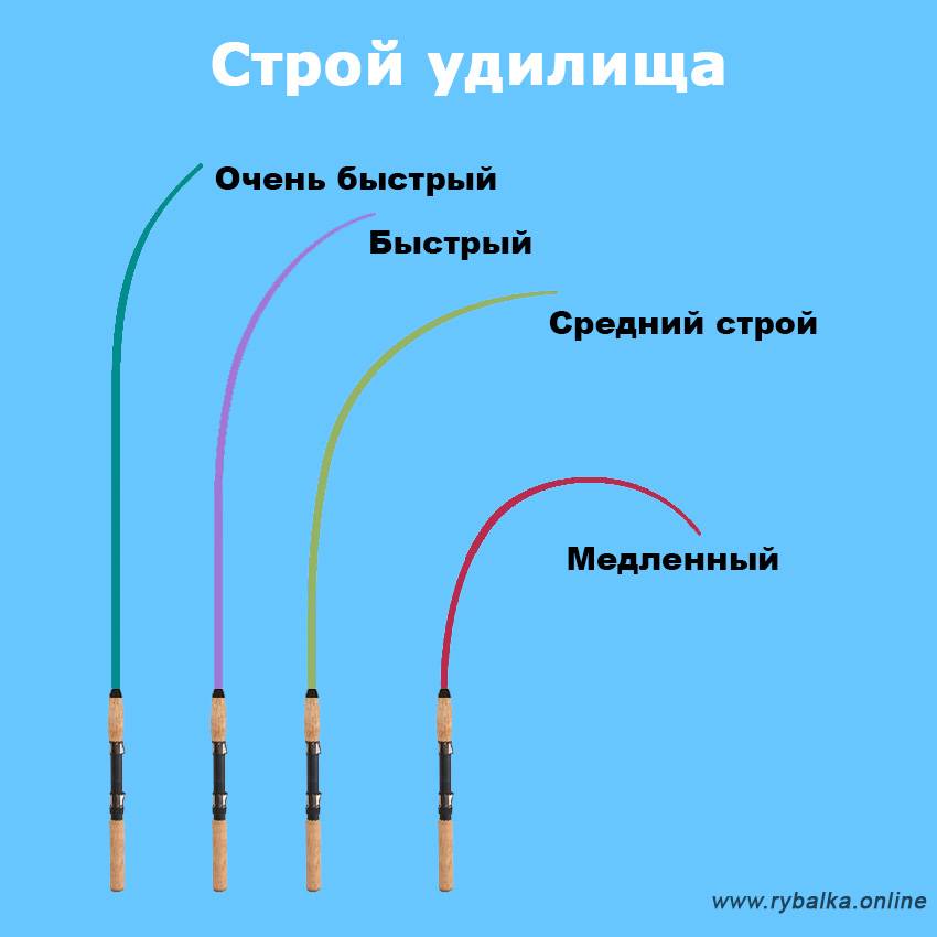 Строй удилищ для некоторых рыболовов имеет важное значение, в основном из-за сложившихся стереотипов, и маркетологи компаний этим пользуются. Но этот параметр весьма факультативен. . Следует понимать, что по настоящему сверхбыстрым строем обладают спиннинги с мягкой вклеенной вершинкой (Кстати, вклейка на спиннинге обычно обозначается латинской буквой «S»). В случае со обычными тубулярными вершинками (обозначается буквой «T»), это деление условно