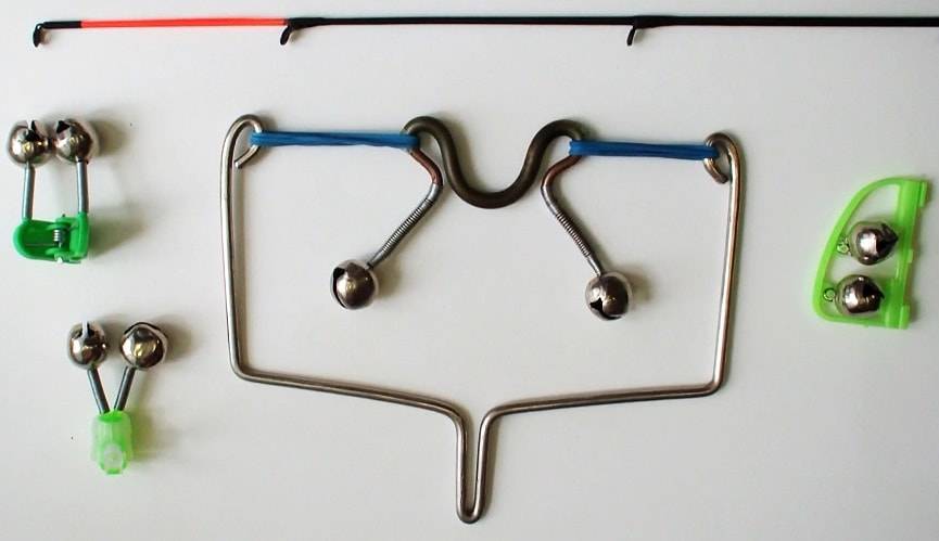 Немного о них мы уже говорили ранее, это простые по конструкции устройства, состоящие из клипсы-крепления и звукового элемента (хотя колокольчики могут иметь лишь пропускное отверстие). Крепятся они на край удилища.