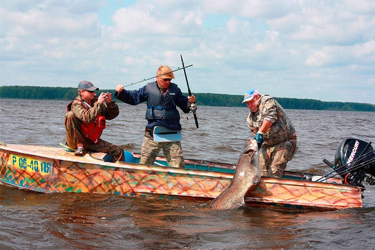 Если рыболов берет трофей рукой, он должен помнить, что важно втащить в лодку голову сома, тело потом ввалится само. При ловле с не слишком надежного плавсредства рыболовам приходится буксировать пойманную рыбу на мелководье и там уже заниматься ее укрощением