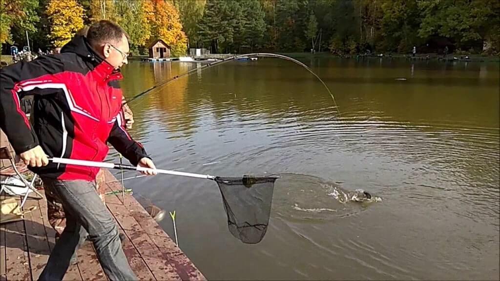 Рыба, которая засеклась, осторожно подводится к берегу на тихую отмель. Достаётся сачком с короткой или длинной рукояткой