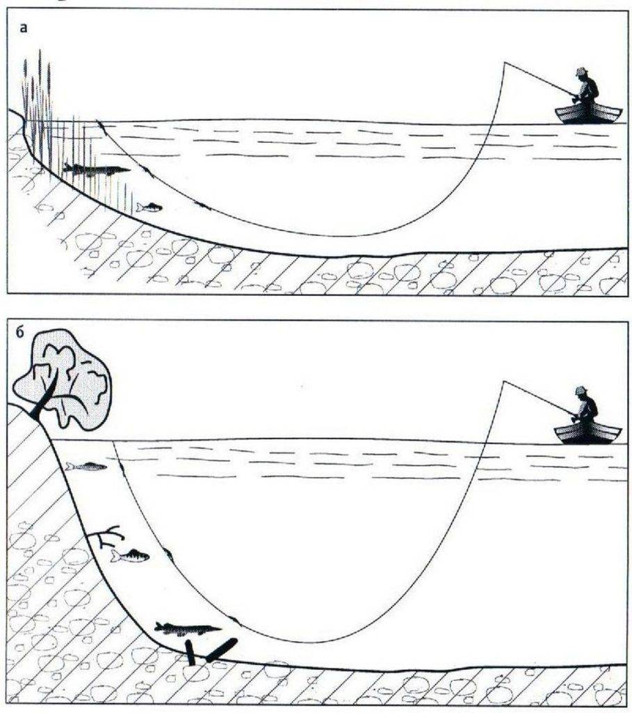 Таким незамысловатым манером начинаем простукивать обозримую акваторию, пытаясь обнаружить места с перепадом глубины, бровки, ямки и прочие особенности рельефа дна.