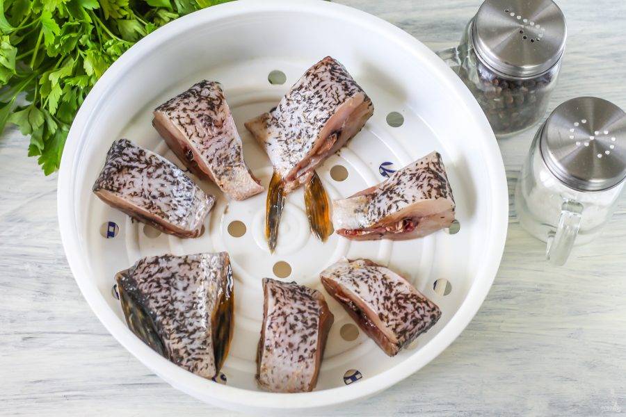 Вкусное и сочное блюдо из щуки можно приготовить за 25-30 минут, если использовать чашу для приготовления на пару. Кусочки рыбы получаются нежными на вкус, от пропаренной мякоти косточки легко отделяются, так что такое блюдо можно будет предложить даже детям.