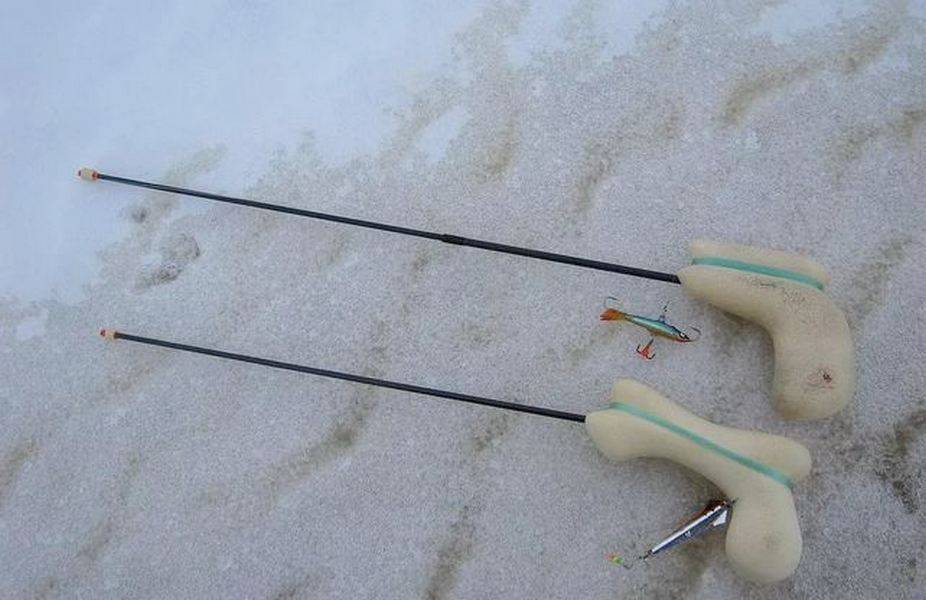 - Подобный удильник удобно установить на краю лунки, и даже если добыча сможет утащить его под воду, унести его на дно не получится из-за высокой плавучести пенопласта.