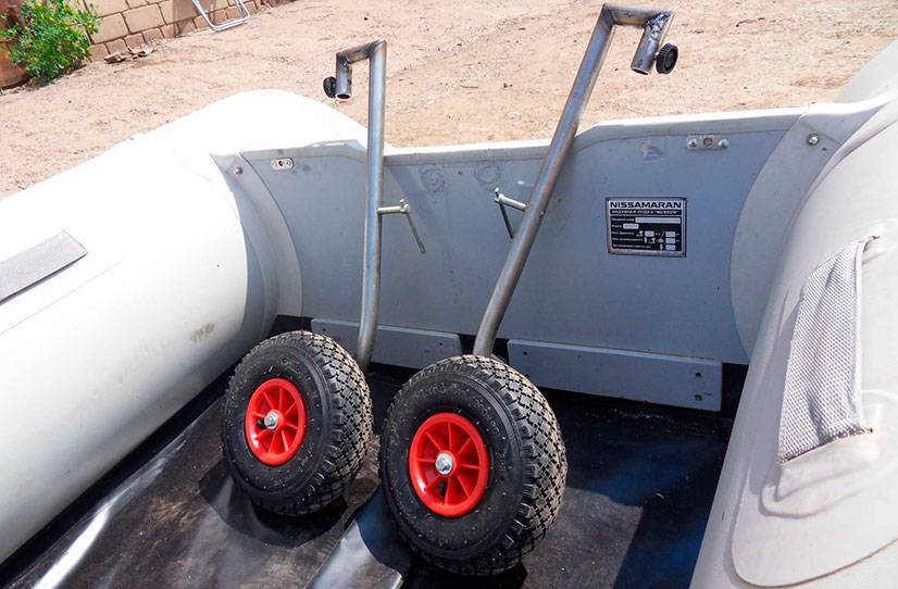 - Поэтому если укомплектованная лодка весит не больше 120 кг, то вам подойдут обычные пневмоколеса.