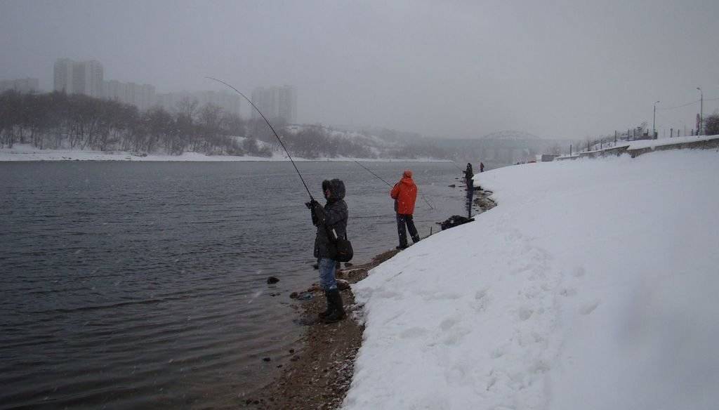 Снежные сугробы и слякоть возле водоема вызывают трудности с выбором места. На обычном ставке небольшой участок открытой воды может быть недоступным. Проще найти место на реке или водоеме с теплой водой. Характерные места обитания хищника: