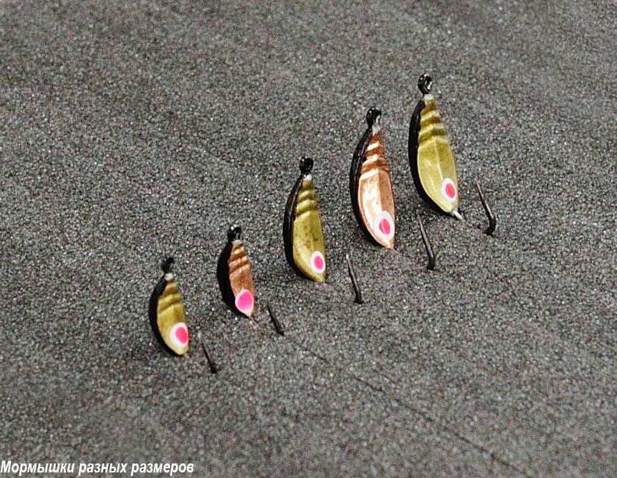 Различие летней мормышки от зимней не так велико. Учитывая погодные условия (температуру, ветреность и другие), в этот период водится неимоверное количества малька, не рекомендуется использование мормышек небольших размеров. В теплое время наиболее актуальны мормышки больших размеров.