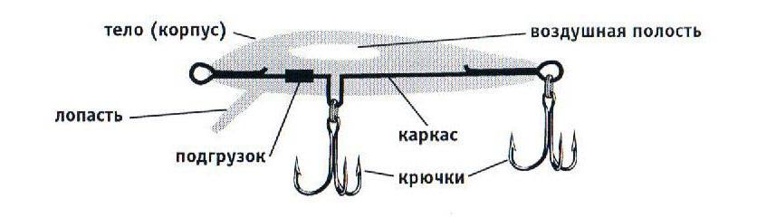 Тело — это основная часть приманки, призванная выглядеть как рыба или другая естественная приманка (например, ракообразные). Некоторые модели имеют корпус из двух частей для повышения мобильности в воде.