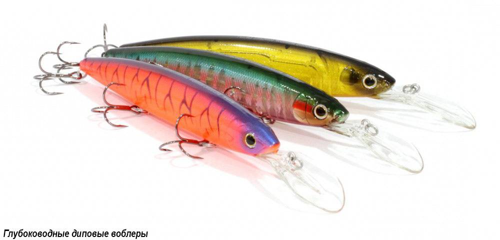 глубоководные диповые воблеры — те же воблеры для глубоких мест, только с длинной носовой лопаткой. У диповых приманок класса минноу конструкция выполнена так, что они хорошо играют на равномерной проводке.