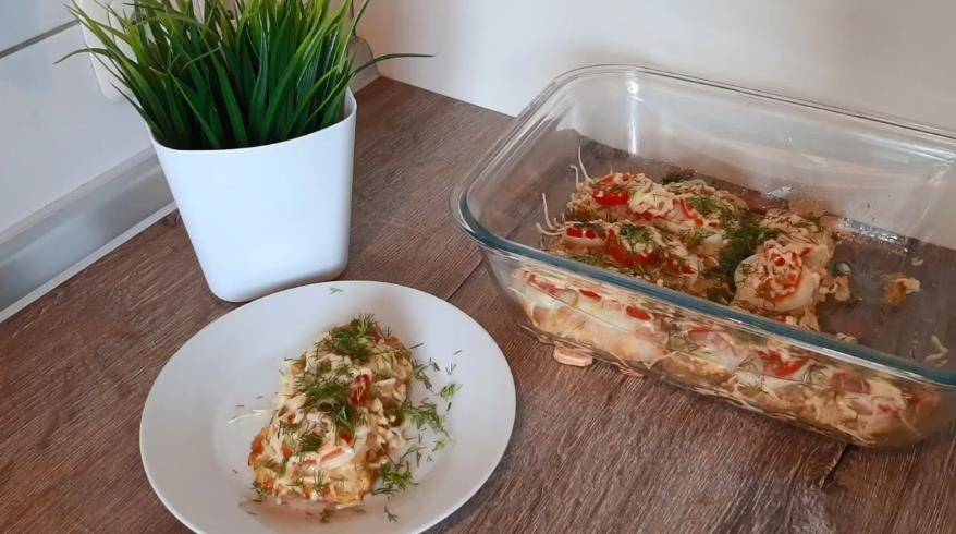 Как выглядит готовое блюдо на промежуточном этапе, можно увидеть на картинке и в видео. В таком виде его и подают к столу. То есть в общей сложности у нас все запекалось 30-35 минут. Этого времени вполне достаточно для полной готовности.