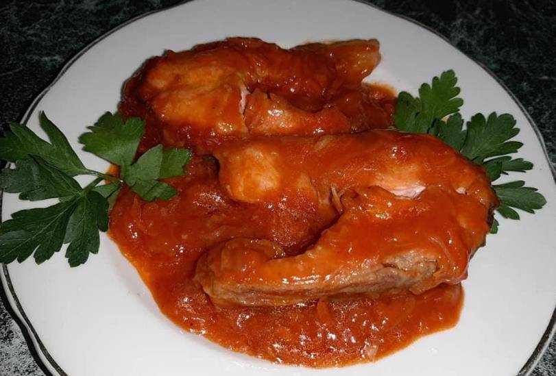 - Нарезать тушку на порционные ломтики филе.